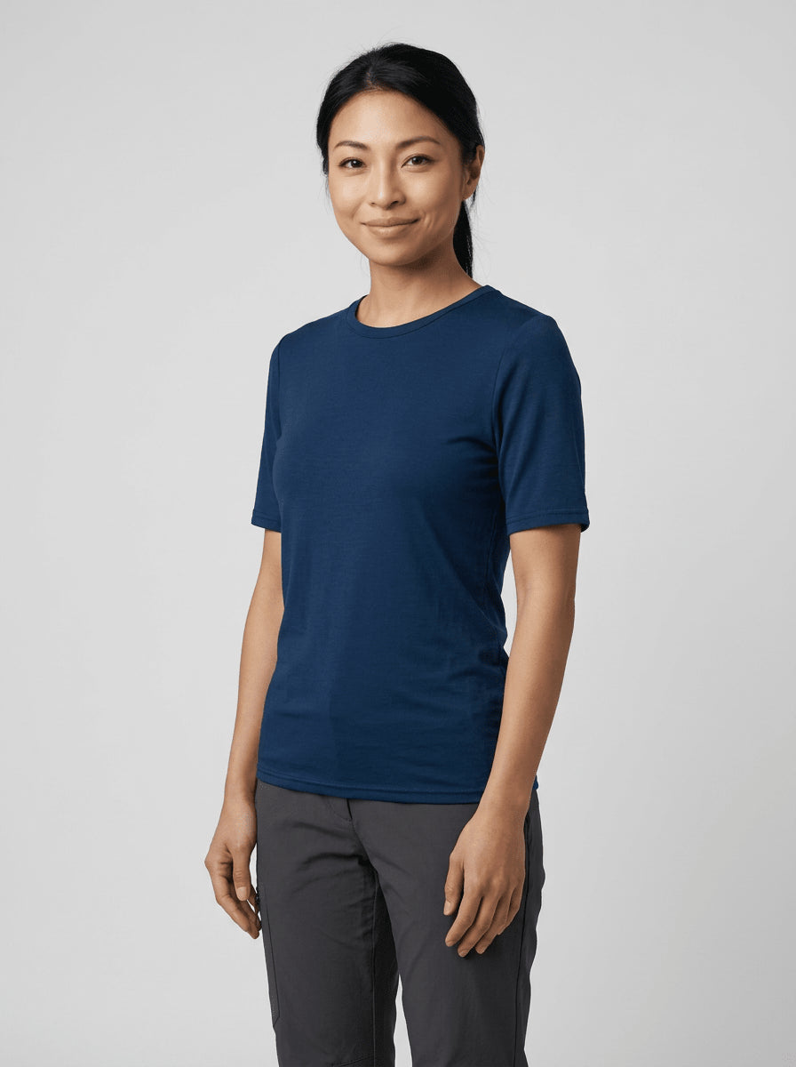 185 Women's Merino Short Sleeve T-Shirt Day By Day - Navy Blue