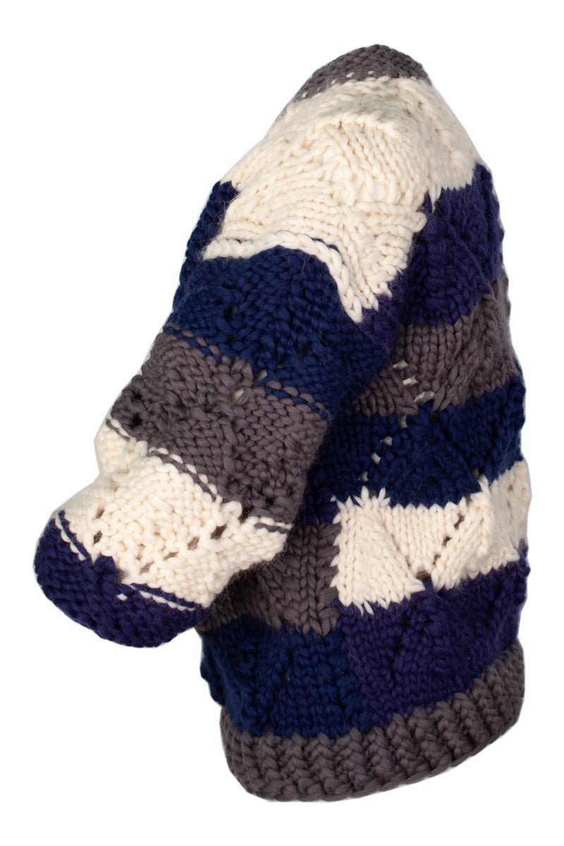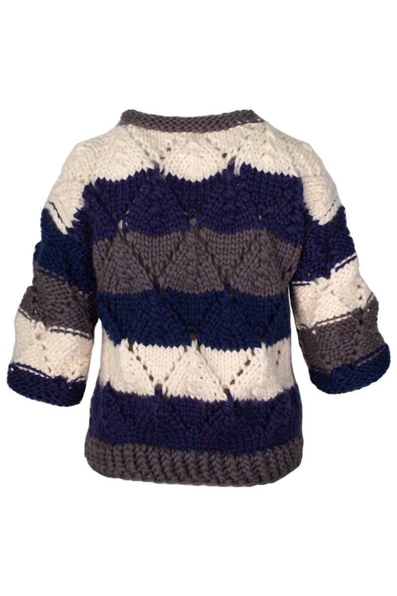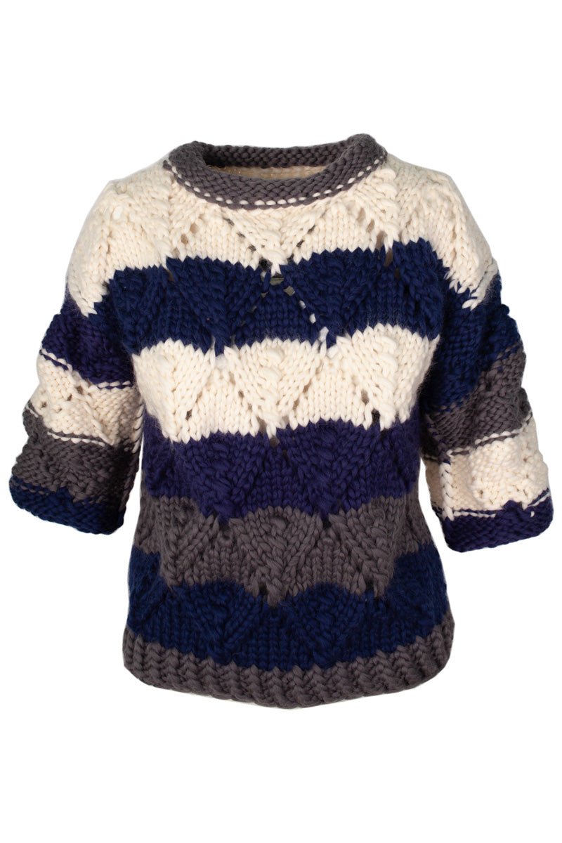 Fantezie is the antidote for boring. It's a smile handknitted in merino wool. A smile in the shape of a sweater with lacy leaves and mismatched stripes and a complete disregard for rules of any kind. There's freedom and inspiration in every stitch.