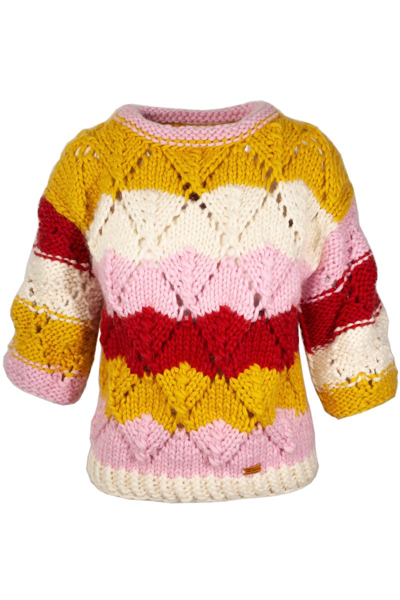 Fantezie is the antidote for boring. It's a smile handknitted in merino wool. A smile in the shape of a sweater with lacy leaves and mismatched stripes and a complete disregard for rules of any kind. There's freedom and inspiration in every stitch.
