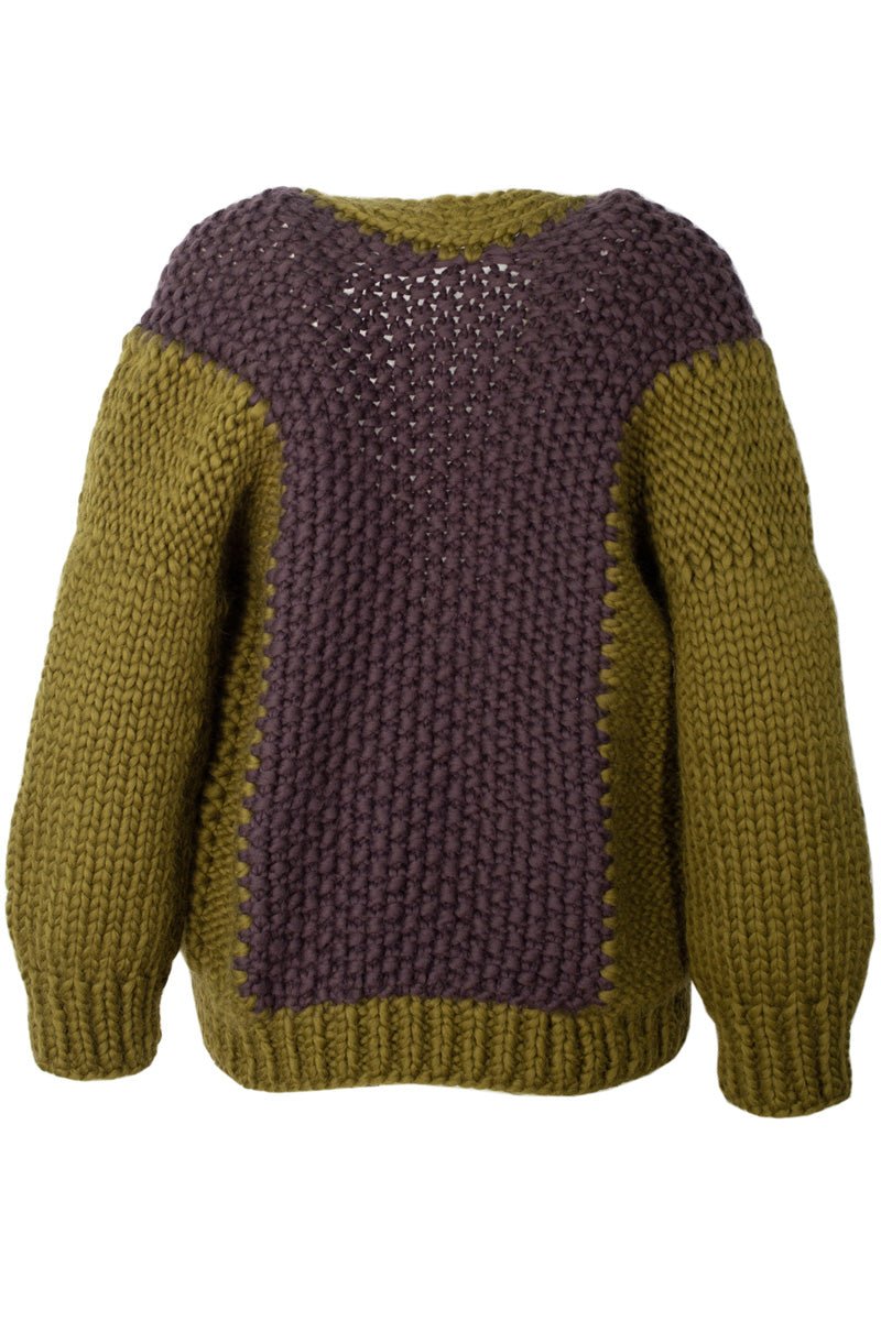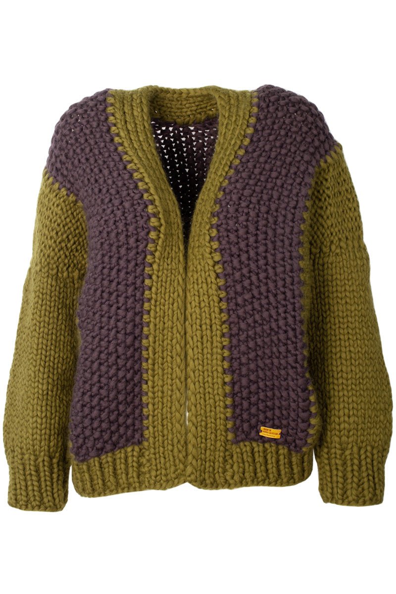 This hand knitted merino wool ladies cardigan is on of our more elaborate pieces, featuring geometrical color blocking and structured in such a way that it is as seamless and comfortable as possible. It can easily be worn as a jacket, and paired with a wide range of outfits.