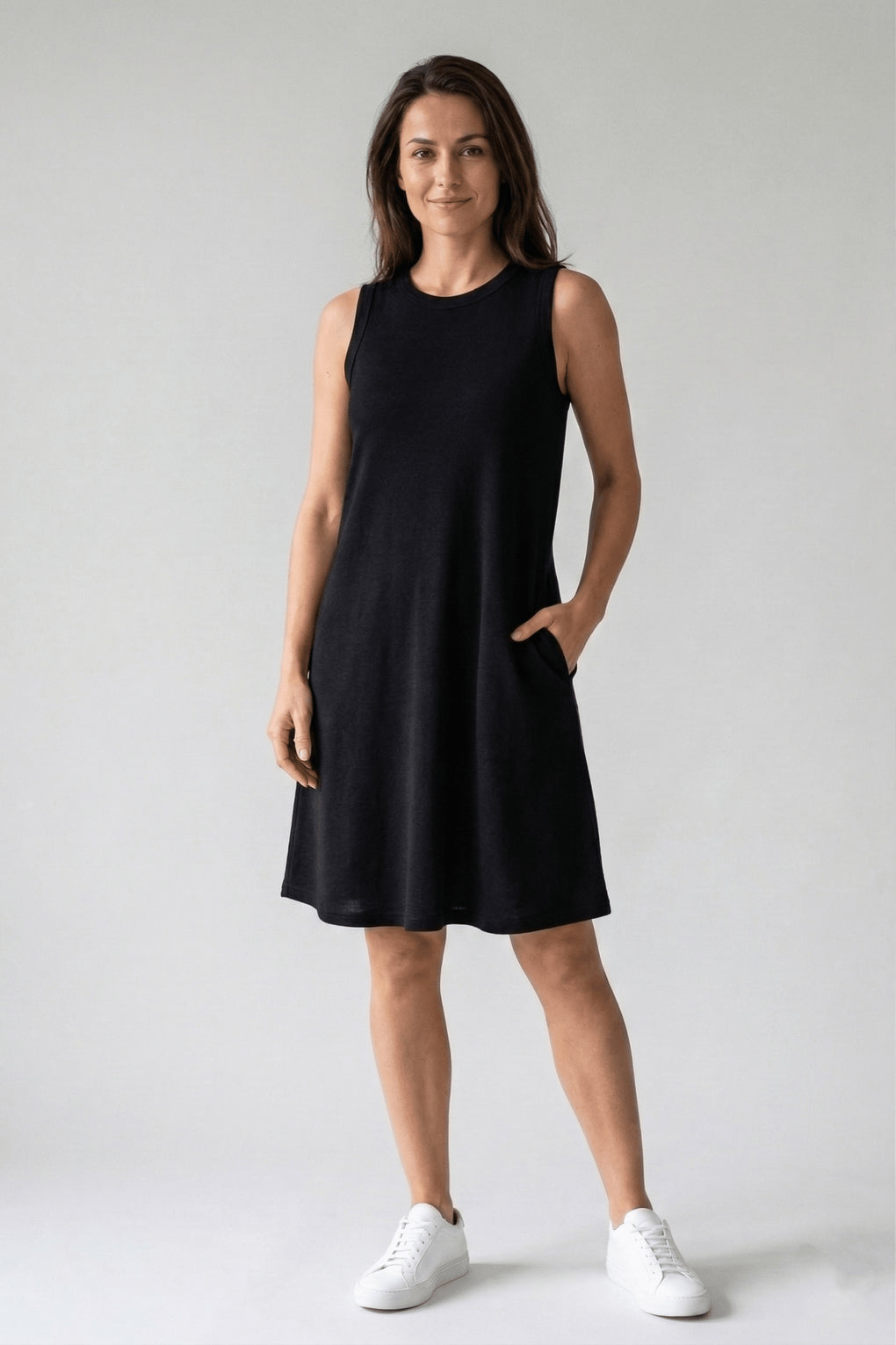 Premium Lightweight Merino Wool Sleeveless Dress – With Pockets